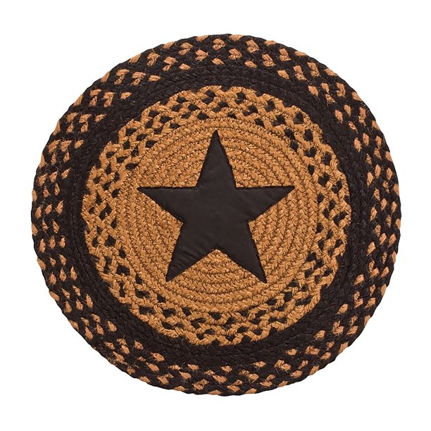 Custom Chair Pads Choose Your Size Design Online Easy As 1 2 3. The Klear Vu Gripper Non. 100 natural jute Braided fibers in blue and tan Accented by a blue applique star Includes two blue fabric ties 15 diameter Primitive Pewter Star Braided Chair Pad is a 100 natural jute chair pad made of woven fibers.