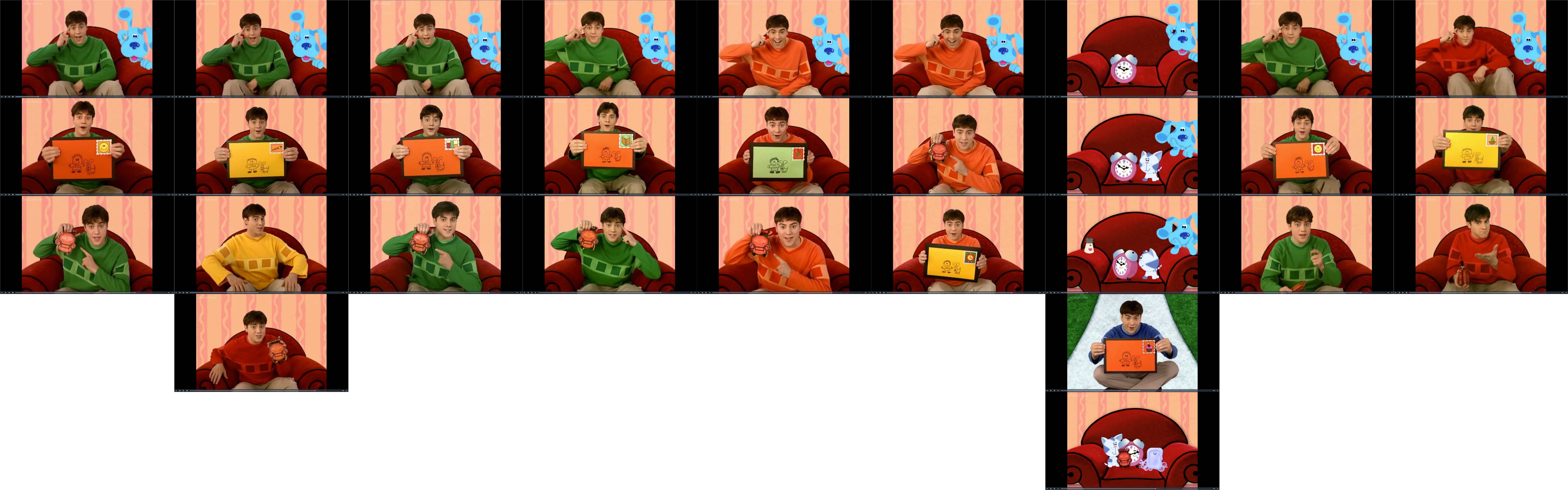43 Behind the scenes 44 Merchandise 45 Other Before Blues Clues began production the Thinking Chair was a. Only 13 Episodes042 Kevin Gasping115 Kevin TeleportsNOTE. Pepper made back when Joe Tickety Tock Slippery Soap Shovel Pail Mailbox and Side Table Drawer were babies and when Steve was a little boy Mr.
