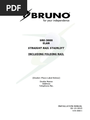 Call Us Free Quote Find Dealer. Annual maintenance is required on Bruno lifts in order to uphold the Gold Star Warranty. INSTALLATION MANUAL 05-13-2015 PN 3000-I STRAIGHT RAIL STAIRLIFT INCLUDING FOLDING RAIL SRE-3000 ELAN.